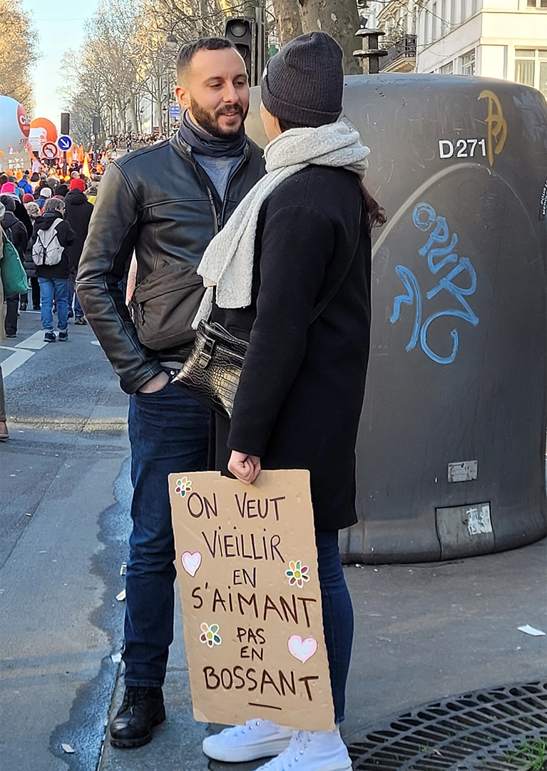 Mon engagement dans de nombreuses associations m’amène depuis pas mal d’années à me battre et  militer pour défendre des causes qui me sont chères. C’est donc naturellement que je descends dans la rue quand cela est nécessaire et que le combat l’exige,  toujours accompagnée de mon meilleur ami : mon appareil photo.